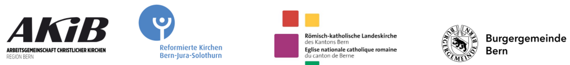 Die Arbeitsgemeinschaft christlicher Kirchen der Region Bern (AKiB) | Die Reformierten Kirchen Bern-Jura-Solothurn (Refbejuso) | Der Römisch-katholische Landeskirche des Kantons Bern | Die Burgergemeinde Bern.